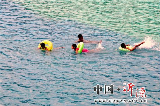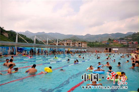 7月20日,高温酷暑。人们在神农药谷泳池消夏纳凉。 入夏以来,气温持续攀升。近日,南鲁山镇神农药谷泳池完工并投入使用。连日来,神农药谷人流如潮,消夏纳凉者扎堆。 据了解,为进一步提高纳凉舒适度,神农药谷新上了风水电设备,美化了地墙面装饰,改善了纳凉环境。做到了通水、通电、通排污、通手机信号,有桌椅、有遮荫棚、有纳凉须知、有防暑药品、有专人专职服务。