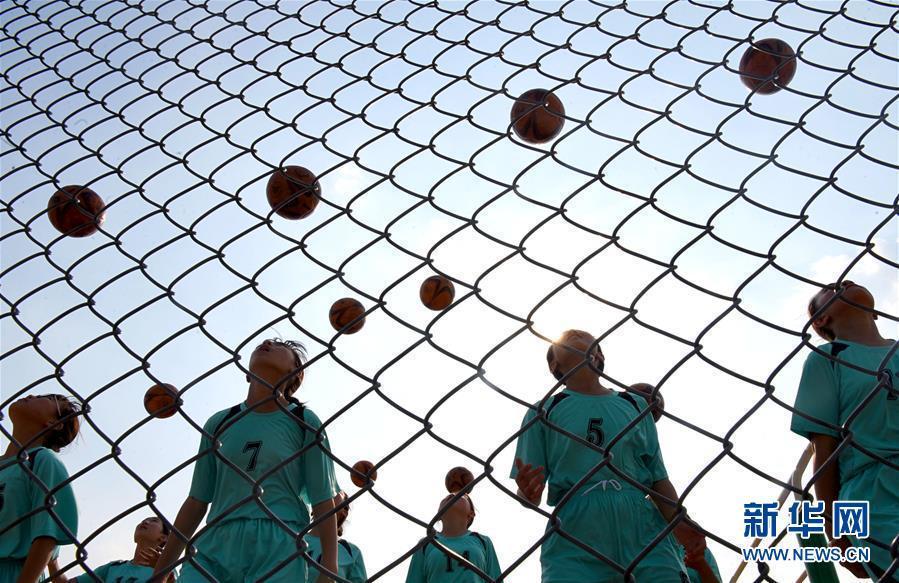 6月11日,孩子们在学校球场进行训练。