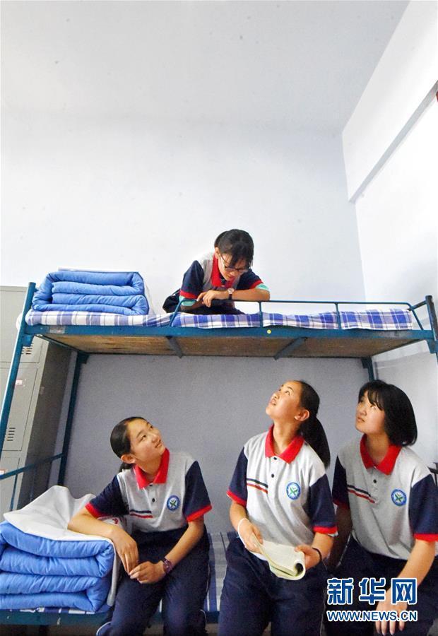 6月11日,孩子们在学校宿舍交谈。新华社发(赵东山 摄)