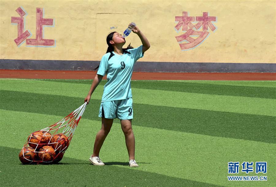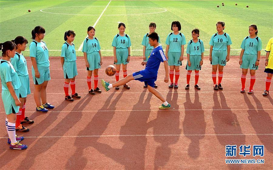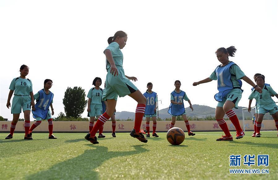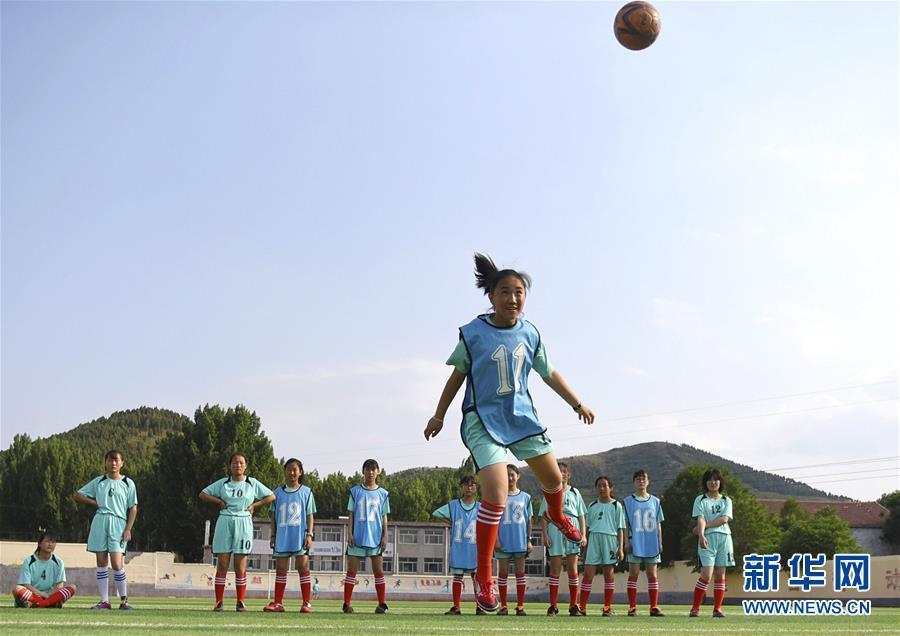 在沂蒙山深处的山东省淄博市沂源县西里中学,一群酷爱足球的山里丫头,为了自己的足球梦正在刻苦训练,汗洒绿茵场。 这群孩子年龄最大的15岁,最小的12岁,常年坚持训练的有20多人。她们从小学就开始接触足球,坚持利用课余时间和体育课进行训练。 为了鼓励更多的山里丫头练足球,学校专门成立了足球社团,让她们接受集中、系统的训练。功夫不负有心人,她们在多项足球比赛中屡获佳绩,在2018年还获得了全县中学生女子足球比赛第一名的好成绩。这群执着于足球的丫头们说,足球让她们变得更坚强、更勇敢,训练就算再苦再累,也要坚持下去,向更高的赛场迈进。新华社发(赵东山 摄)