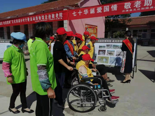 在中华人民共和国成立七十周年和重阳节到来之际,为庆祝祖国七十周年华诞,弘扬和继承中华民族“尊老、敬老、助老”的优秀文化和传统美德,丰富敬老院老人的精神文化生活。九九重阳前期,沂源县文化和旅游局、鲁村镇党委政府联合举办了博物馆暨文化润源乡村行走进鲁村敬老院活动。 文化和旅游局副局长任冬菊同志,鲁村镇宣传委员耿军同志作了热情洋溢的讲话,祝福老人节日快乐,身体健康。文化馆的优秀演职人员,为这里的老人送上了一台精彩纷呈的视听盛宴。 节目形式丰富多彩,包括广大群众喜闻乐见的快板、戏剧、独唱、男女二重唱、笛子独奏等,听着演员们美妙的歌唱声,老人们沉浸在其中,时不时还跟着哼唱几句,评论几句,精彩的表演也赢得了老人们的阵阵掌声和叫好声。 节目完成后,老人们又兴致勃勃的观看了遗风古韵图片展,以沂源县重点文物保护单位、文物点、和沂源博物馆馆藏精品文物为主题,共计三十面流动展板,讲解员为老人们详细讲解了每件文物的背景、来源和历史意义。老人们听得很认真,不时地提问几句,或者认真的讨论解说员说的文物以及文物保护单位的现状等等。 此次文化送进鲁村敬老院活动为老人枯燥的晚年生活带来了欢乐,受到了老人的高度赞扬。(郑家菊 段卉鹃) | |||
