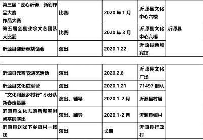 2020年春节、元宵节期间沂源文化活动一览表