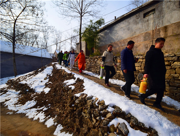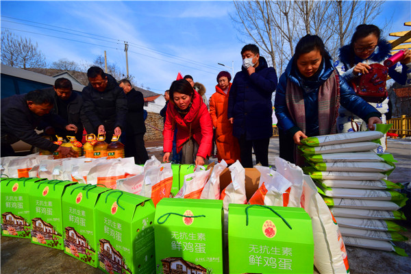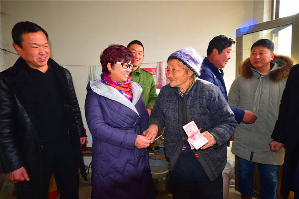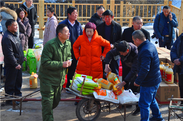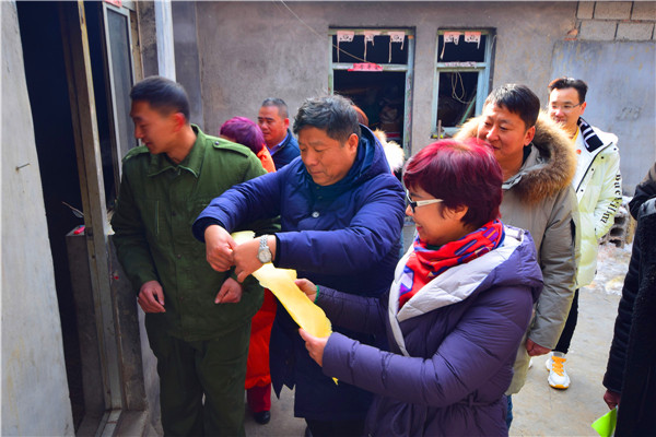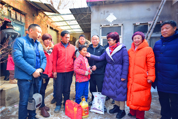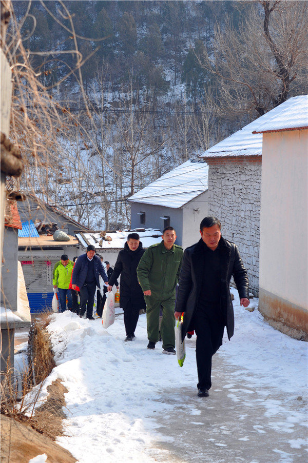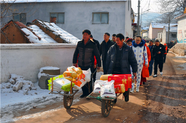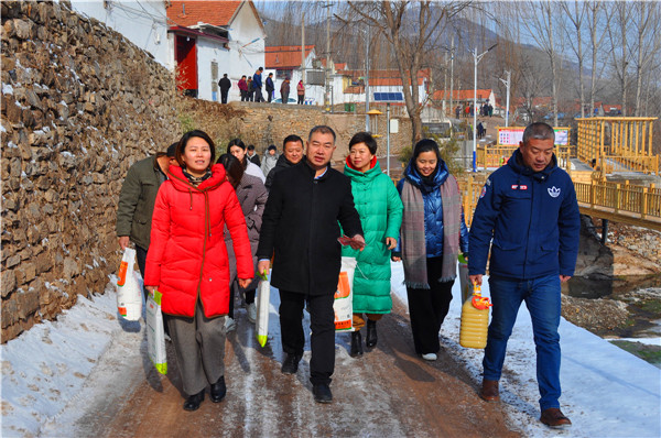 春节临近,沂蒙大地到处弥漫着浓浓的年味。 1月15日,地处大山深处的沂源县南鲁山镇胜家庄村来了一帮外地客人。 他们冒着严寒,踏着冰雪,带着春节生活用品和慰问金走进百姓家里,看望老人、留守小学生和建档立卡的贫困家庭。整个山村沸腾了。 这帮客人是淄博川渝商会与淄博市教练型企业家协会的干部职工。 临近春节,在村第一书记石磊和村书记窦全玉的大力协助下,他们一行30人带着2万元慰问物资和6500元慰问金来到山村。 一天中,他们分头走访慰问82户建档立卡贫困家庭,15位孤寡老人和4个留守小学生。他们的到来,解决了留守学生一学期的校餐费。 在87岁老大娘陈大美家,来访的干部职工拉着老人的手问寒问暖。大娘感动地连连感谢:“共产党好,社会好,好心人多。” 在一年级小学生陈义泽家,叔叔阿姨鼓励他好好学习。陈义泽连连点头,并向叔叔阿姨行学生礼。 正在摊煎饼的村民揭起热气腾腾的煎饼招待客人…… 整个山村洋溢着浓浓的春意,沉浸在爱的欢乐中。(陈作进)
