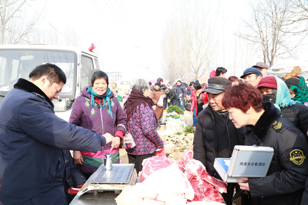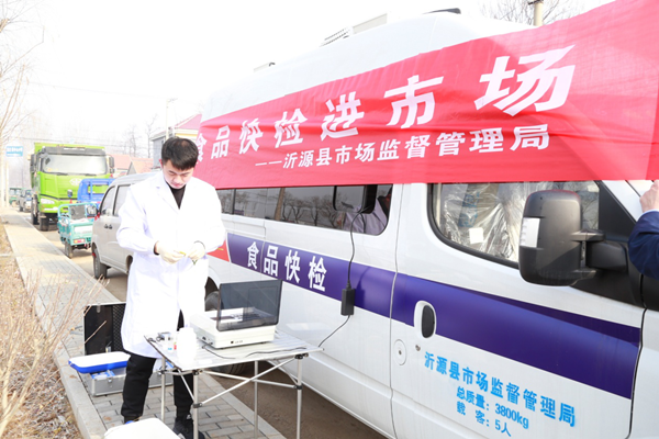 “食品快检车”陪着群众赶年集,组织开展食品快检进市场“你点我检”活动,保障百姓“菜篮子”健康安全。