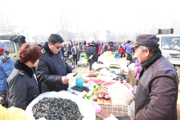 春节临近,全县各处农村大集呈现出一派红红火火的繁荣景象,各种肉类产品、干鲜果品、新鲜蔬菜、春联、年画、灯笼、花生、瓜子等物资大量上市。近日,县市场监管局启动“食安护佳节”行动,各市场监管所、各有关执法科室全面加强农村大集市场监管,把好年货安全关,筑牢年集商品销售防线,用心守护群众消费安全。