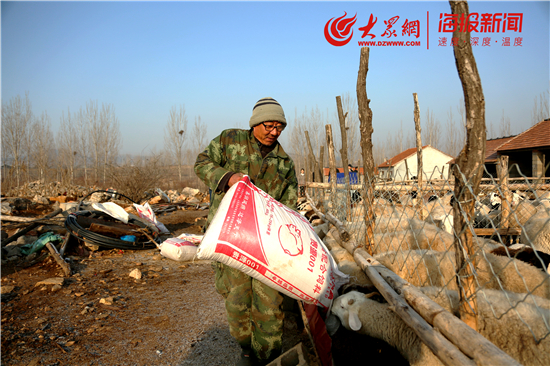 来源;大众网·海报新闻 编者按: 2020年是脱贫攻坚收官之年,是全面建成小康社会,实现第一个百年奋斗目标的决胜之年。今年春节期间,大众网·海报新闻将连续第11年开展新春走基层活动。全体编辑、记者将继续以深入学习贯彻习近平总书记对大众日报创刊80周年重要批示精神为指引,进一步锤炼提升“脚力、眼力、脑力、笔力”,联合中共淄博市委组织部、淄博市扶贫办,聚焦“脱贫攻坚”,展现淄博干部群众一鼓作气、迎难而上的精神风貌。 时间:2020年1月20日(腊月二十六) 地点:淄博市沂源县鲁村镇舍庄一村 大众网·海报新闻 记者 李波 许炳棋 张伟铭 大寒是一年中最寒冷的节气。这天,淄博市沂源县最低气温达到零下6℃,路边树枝上挂满了结成冰晶的露霜。 清晨,天还没亮,沂源县鲁村镇舍庄一村的朱建友就起床摸索起眼镜,去给家里的200多只羊准备“早餐”,豆面、麸子、草料……好丰盛。 “多吃点,多长肉。”老朱看着圈里吃的正欢的羊儿们,心里乐开了花,有了这些羊,家里的日子就有了指望。