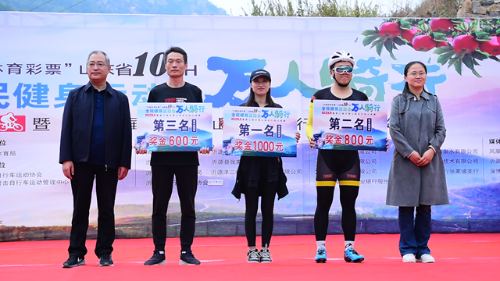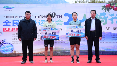 金秋送爽、瓜果飘香,在举国上下隆重欢庆伟大祖国成立71周年之际,“中国体育彩票杯”山东省第十届全民健身运动会万人骑行(沂源站)暨第三届沂源山地自行车大奖赛,于10月11日上午在沂源开赛。本次大赛由山东省体育局主办,淄博市体育局、淄博市体育总会、沂源县人民政府承办,沂源县教育和体育局、张家坡镇人民政府协办。省自行车运动协会副秘书长刘威、市体育局党组副书记、副局长黄雪颂、凤凰网山东董事长兼CEO刘雷、市体育运动学校副校长杨雷、县政府副县长张莹莹、县委宣传部常务副部长高和成、县教育和体育局局长李林、张家坡镇党委书记田立勇、镇长孙万波等领导出席开赛仪式并为获奖运动员颁奖。