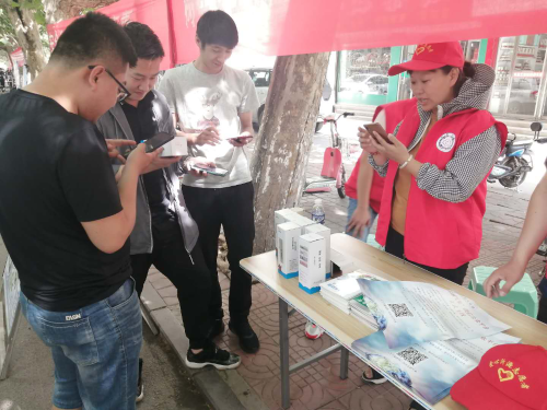 我们的志愿服务者把沂源气象微信公众号推广到群众的手中。
