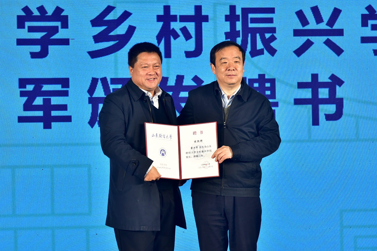 当天的仪式在沂源县鲁村镇龙子峪村沂河源田园综合体·汇泉桃花岛举行。山东财经大学党委书记王邵军说,乡村振兴战略即将开启“十四五”新征程。 山东财经大学乡村振兴学院的成立,意义非凡。希望校企三方强强联手、协同努力,让山财大乡村振兴学院茁壮成长,越办越好。山东省政协常委、深圳东方汇泉金融控股集团董事局主席董方军获聘山东财经大学乡村振兴学院院长。董方军感谢母校把大学办到了田间地头、办到了自己的家乡。下一步,将把产学研相结合,在广阔的乡村领域开展实践教学、重点热点问题科学研究,扎实推进农业农村现代化特色建设工作,为乡村振兴贡献力量。