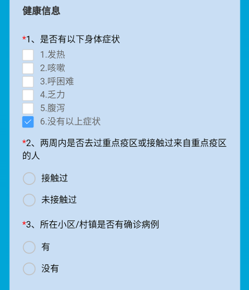 3、如实填写个人健康情况、接触史。