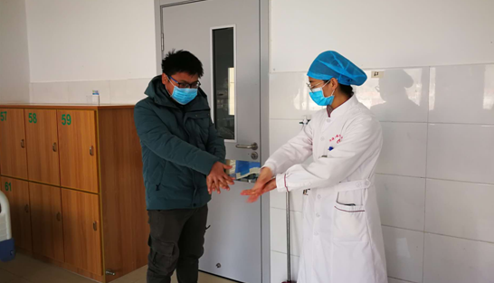 苟利国家生死以,岂因福祸避趋之。医者不是生而无畏,而是生命值得敬畏。此刻,笔者带您走进沂源县第二人民医院,看看他们都是如何逆行战“疫”的。 预检分诊前移,站好防控“第一岗”。 全院仅保留唯一出入口,工作人员严阵以待严格筛查所有进院人员,详细询问流行病学史、测量体温。“体温合格人员方可进入普通病区或普通门诊,可疑人员则由专人引导至发热门诊就诊。”该院副院长徐蒙告诉笔者,1月21日起,该院就在门口设立预检分诊,由医护、保卫人员共10人2班24小时值班。1个多月过去了,累计检测2600余人,始终不懈怠不放松,不畏严寒站好“第一岗”。