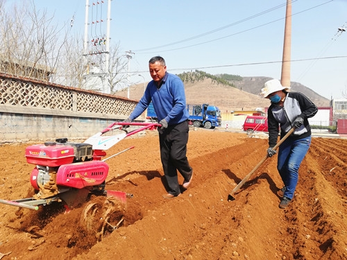 眼下正值春耕备耕时节,疫情防控形势的好转为农业生产提供了有力支撑。沂源县鲁村镇的农民们纷纷走出家门,开始今年大春作物的春耕备耕工作。图为徐家庄村民正在用微耕机耕地起垄。(申恒安)