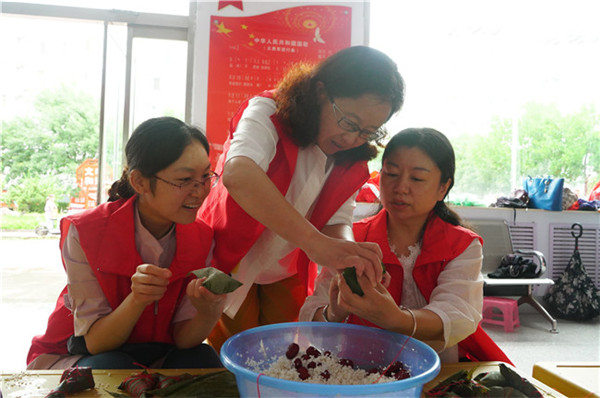端午佳节素有品粽香、带香囊之俗。为传承端午民俗的文化内涵,丰富辖区居民的业余生活,给社区增添一份端午节的节日气氛,6月23日,山东淄博沂源历山街道城东社区联合10家共建单位,与社区楼长、单元长、居民代表、志愿者开展了“巧绣荷包,浓情端午”的绣荷包、包粽子活动。 “七彩丝线缠香囊,祝福裹满暖心房”。巧绣荷包现场,荷包布料、针线、剪刀、艾草香料、挂饰配件等材料一应俱全。绣娘们边向大家介绍端午佳节的风俗及佩戴荷包的来历,边熟练地缝制着。在绣娘的带领下,大家开始认真动手制作,飞针走线。不一会,一块块布料,一条条穗子就变成了色彩斑斓、小巧玲珑的荷包。 看着美轮美奂的荷包,大家纷纷投票,为本次巧绣荷包比赛评选出一等奖作品1件,二等奖作品2件,三等奖5件。 再次进行包粽子环节,大家如同一家人一般围坐在一起,有说有笑、其乐融融,共同畅谈着对社区更美好明天的向往,大家纷纷拿出了看家本领,捋着粽叶、填着糯米、熟练的扎捆。瞬间一只只漂亮的粽子都已成型。不一会功夫就已经装好了几大盆。粽子煮好后,大家兵分几路,带上刚刚出炉的新鲜棕子,来到了社区老党员、低保户、困难户及退役军人家庭,让他们吃上香喷喷的粽子,感受社区的浓浓情意,共享社区大家庭的和谐温馨。 此次活动得到了广大居民的积极响应,小小的荷包、小小的粽子承载了大家端午佳节的祝福,同时也为端午节增添了一份浓浓喜气,增进了社区邻里间的友情,提高社区居民的幸福感。(陈义香 任轩正)