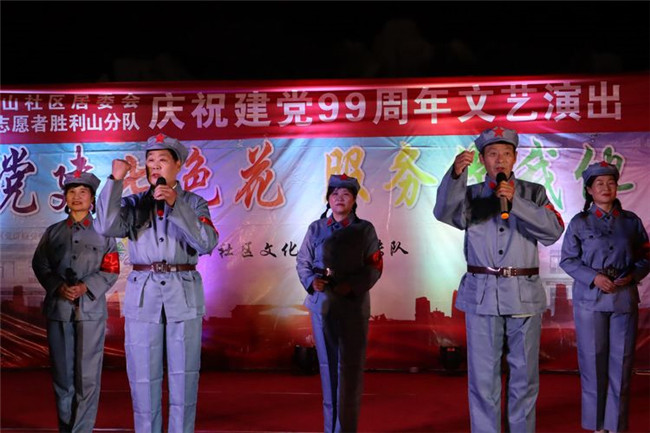 为庆祝中国共产党成立99周年,继承和弘扬党的光荣传统和优良作风,丰富社区居民群众的文化生活。近日,历山街道胜利山社区联合春松志愿服务队胜利山分队、综合行政执法局举办了精彩纷呈的庆七一文艺演出,共同庆祝中国共产党99岁生日,向伟大的党献上诚挚的祝福。