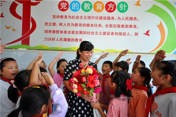 9月10日,在第36个教师节来临之际,沂源县南鲁山镇中心小学举行“铭记师情,感谢师恩”庆祝教师节活动。