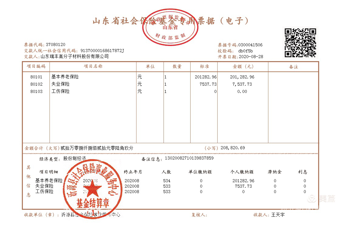 “企业一票征缴”电子票据助力政务服务再上新高度 为稳步开展企业电子票据推广应用,沂源县社保中心根据上级部门文件要求和工作部署安排,通过精心的研讨筹备,2020年顺利开出首批“企业一票征缴”电子票据,全面开启社保电子票据新篇章,真正实现了参保单位“一网通办,一次办好”。 社保中心按照“试点先行、分级推进”的工作思路,于4月27日开出淄博市首批区县机关职业年金电子票据后,经过近4个月运行,已顺利开具电子票据631张,2617万元,为企业电子票据的开具奠定了坚实的基础。 按照社保网上服务大厅“UK”登录和无“UK”登录,分别反复测试流程,制作《网上缴费和电子票据申领流程》,第一时间下发企业单位、个体工商户,优化经办服务,实现社保缴费“零跑腿”。 下一步,我县将继续加强电子票据的宣传和使用,在提升社保信息化管理水平的同时,不断优化社保经办工作效率,开启社保智能化便捷服务新征程,助力政务服务再上新台阶。