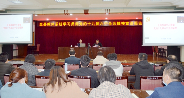 | 县教育和体育局:全县教体系统学习贯彻党的十九届六中全会精神暨廉政教育报告会举行 | |||