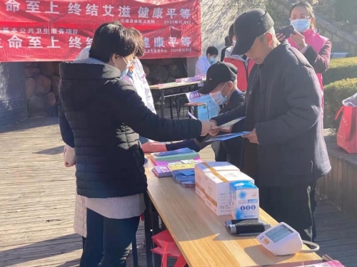 12月1日,由沂源县卫生健康局牵头,县总工会、团县委、县妇联、县人民医院、县中医医院、县疾控中心、县妇幼保健院、南麻卫生院等单位在胜利山九九乐园开展“世界艾滋病日”集中宣传活动。 今年12月1日是第34个“世界艾滋病日”,主题为“生命至上 终结艾滋 健康平等”,强调坚持人民至上、生命至上,共建共知共享,携手应对包括爱滋病在内的疾病流行带来的风险与挑战,为实现防治目标、终结艾滋病、终结疾病大流行而努力。 工作人员通过悬挂艾滋病、性病宣传横幅,摆放展板,发放宣传单、宣传彩页,发放计生用品等形式进行宣传,并现场解答群众咨询。同时,全县12处镇卫生院在辖区内开展了不同形式的艾滋病防治工作宣传活动。通过多种形式的大力宣传,进一步提高了群众艾滋病知识知晓率和防范意识,对全县艾滋病防治工作起到了积极作用。