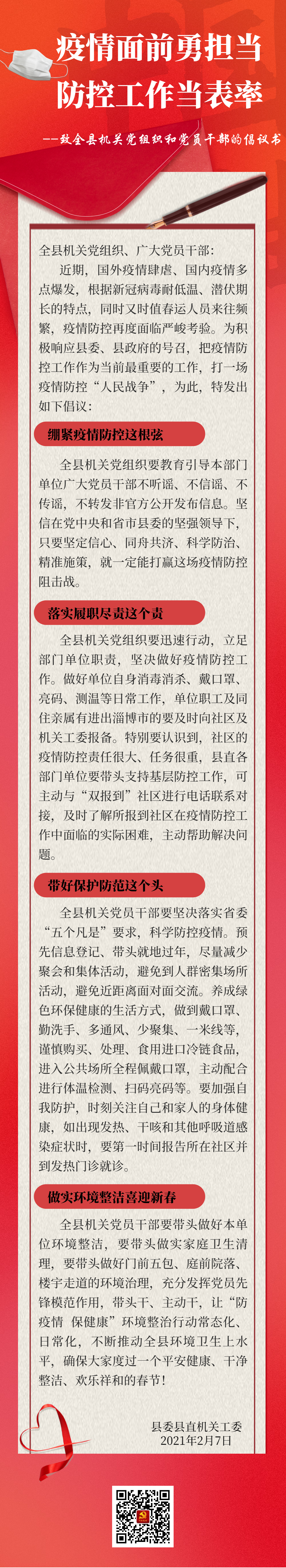 致全县机关党组织和党员干部的倡议书