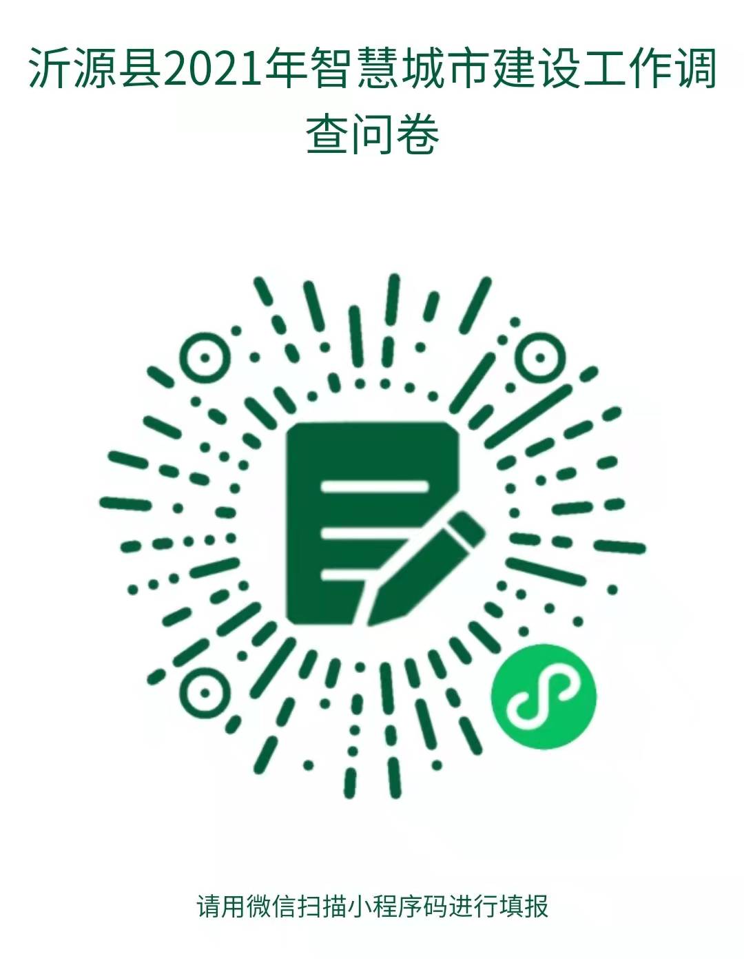 为进一步提高我县智慧城市建设水平,提高工作透明度,现邀请您对沂源县2021年智慧城市建设工作进行评议,请扫描以下二维码并根据实际情况填写调查问卷。