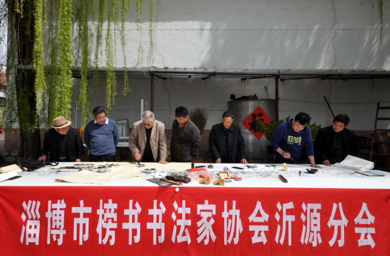 为推进书法文化事业发展,4月1日,淄博市榜书书法家协会沂源县分会的书法家们在悦庄镇东埠村举办书法笔会活动,来自全县的10多名书法爱好者参加了本次活动。