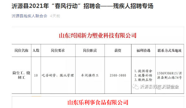 一是开设微信公众号,提高政策知晓率。开设“沂源县残疾人联合会”微信公众号,提高政策知晓度。在2021年3月份注册“沂源县残疾人联合会”微信公众号,快捷发布相关工作动态、办事指南并及时进行相关政策解读信息,确保各项信息公开到位,各项活动宣传到位,各项政策落实到位,切实提升了残疾人相关政策的透明度和知晓率。 二是联合县人社局,网上发布招聘信息,助力残疾人就业创业。每年年初联合县人社局“春风行动”招聘会,通过开展现场招聘会、网络招聘会等形式,发布残疾人招聘信息。同时,发放技能培训、就业创业等相关政策信息,促进残疾人与招聘企业“供需”有效衔接,以公开促残疾人就业、创业。 积极推进残疾人就业,通过“沂源县残疾人联合会”公众号公开2021年“春风行动”招聘会—残疾人招聘专场,进一步拓宽了残疾人就业渠道,提高残疾人就业率,改善残疾人生活水平,确保各项政策惠及残疾人。