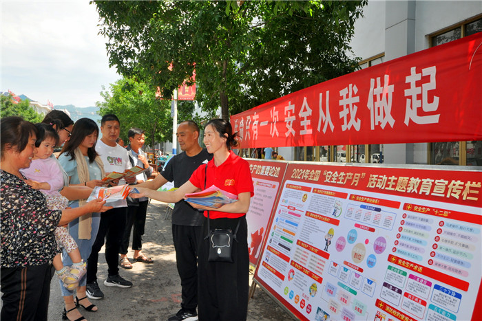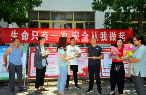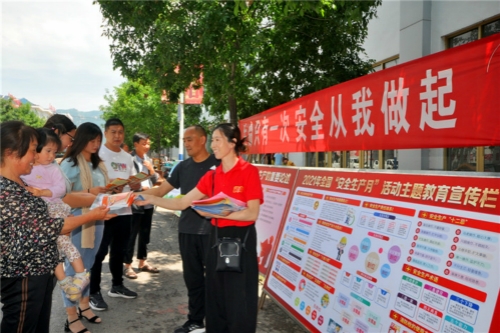 6月18日,南鲁山镇应急办及村级安全网格员在土门大集上向群众宣传安全生产知识。