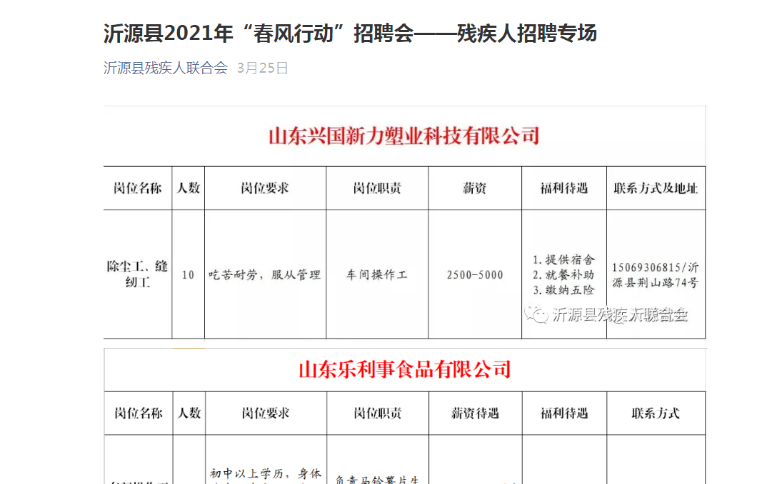 沂源县残联以政务公开为抓手,主动公开残疾人相关政策文件及业务办理流程,为残疾人群众办理相关业务提供了便利,同时让群众知情、理解、参与、监督残疾人工作,以公开促进残疾人各项工作制度化、规范化、精细化水平的提升。 一是公开“岗位需求+职业培训”信息,畅通残疾人就业渠道。县残联联合县人社局、各有关企业梳理残疾人可以胜任的就业岗位,在政府网站、微信公众号等平台发布就业信息,为广大残疾人朋友参与就业提供机会。同时公开电气焊、糕点制作、养殖技术等职业技能培训信息,指导残疾人学习新技能,让残疾人有一技之长,提高残疾人就业的可选择范围。 二是公开“政策宣传+协助签约”信息,帮助残疾人实现就业。县残联工作人员走进企业,上门服务,一方面向企业宣传讲解订立劳动合同、为职工缴纳社保等方面的安置残疾人就业优惠;另一方面积极与企业对接,探寻残疾人工作岗位,并结合日常残疾人就业来访登记手册人员花名册,安置符合条件的残疾人到企业参与就业,做企业与残疾人的中间人。 三是公开“政策宣传+业务办理”信息,帮助残疾人享受涉残政策。县残联借助政务公开平台、微信公众号等公开平台,结合助残日、爱耳日、爱眼日等活动节点加强残疾人政策宣传,公开业务办理流程,为残疾人办理相关业务提供便利,同时,在全社会营造关心、关爱残疾人的氛围。