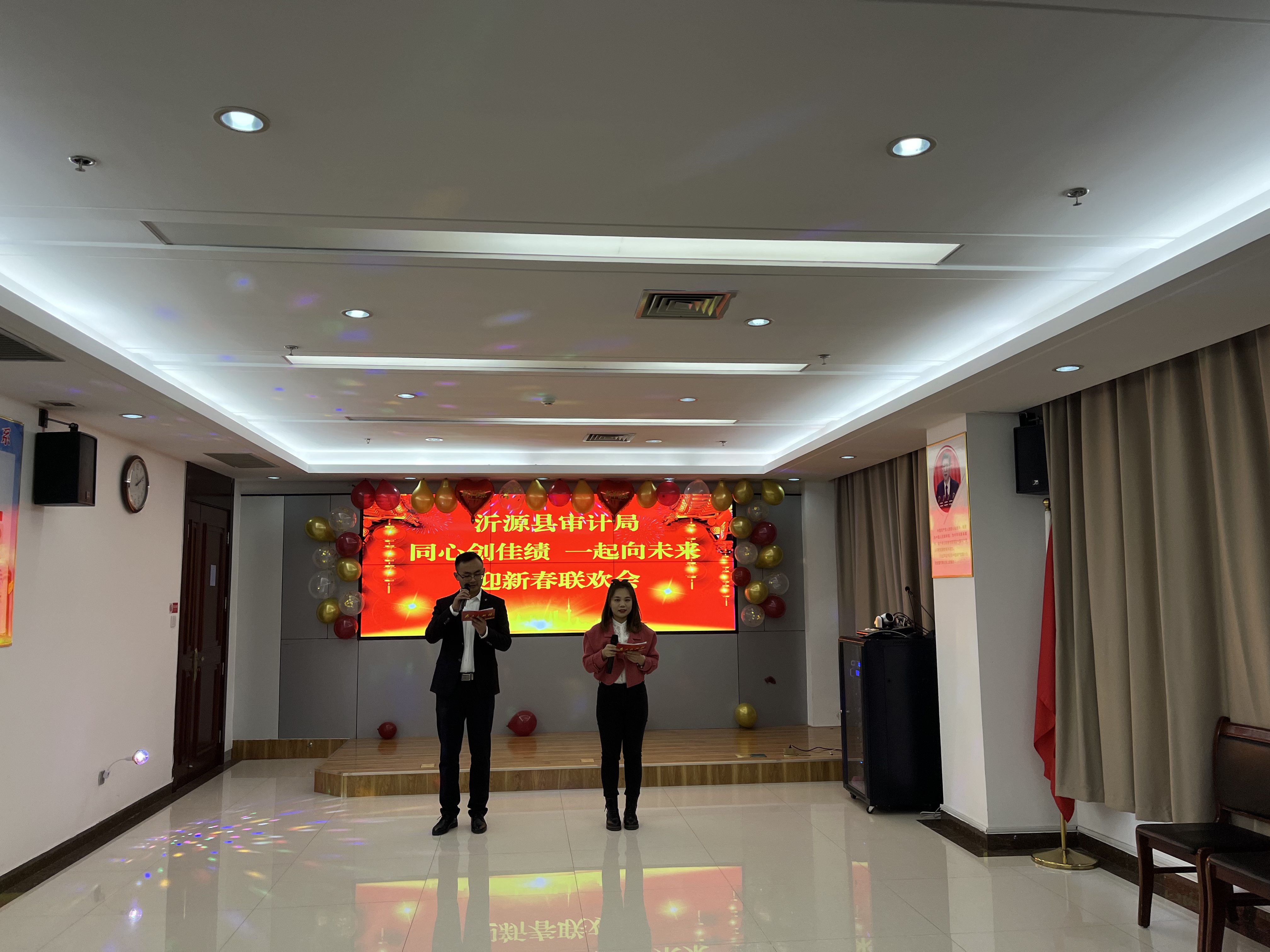 春节即将来临,为进一步弘扬中华民族传统文化,丰富干部职工精神文化生活,营造热烈喜庆、文明祥和的节日氛围,沂源县审计局举办了“同心创佳绩 一起向未来”迎新春联欢会。 喜庆的舞蹈跳起来,欢快的歌儿唱起来,联欢会现场精彩纷呈,15个节目均由干部职工自编自导自演。青春活力的开场舞《我们都是追梦人》拉开表演帷幕,歌曲《念亲恩》唱出父母的伟大,三句半《虎年大拜年》赢得了现场阵阵掌声,活动中的互动游戏将联欢会推向了高潮。整个活动现场气氛欢快热烈,歌声、笑声、掌声连成一片,大家一起载歌载舞,充满了喜庆和欢乐的热烈场面,给全体职工送上了浓浓的年味和新春的祝福。 大家纷纷表示,我们在欢声笑语中欢送2021,期盼在虎年审计工作再上新台阶,以优异成绩迎接党的二十大顺利召开。 | |||