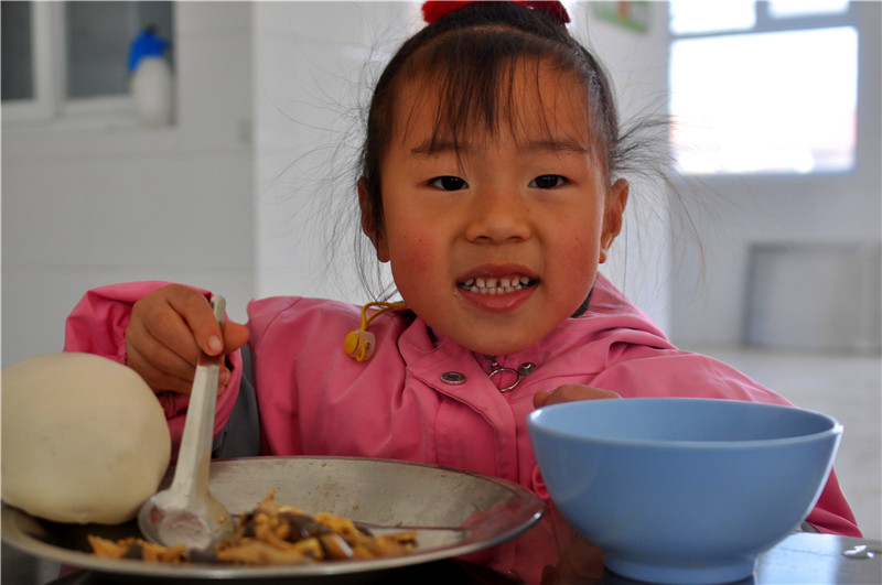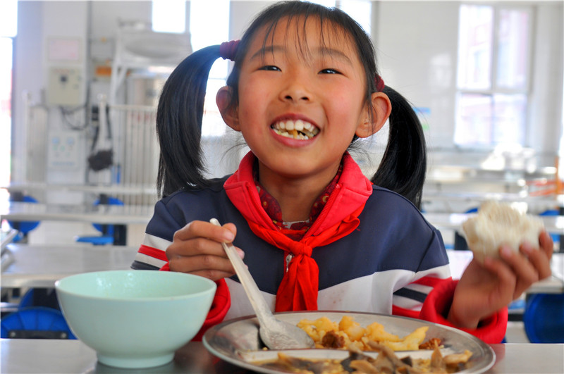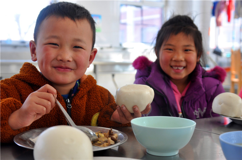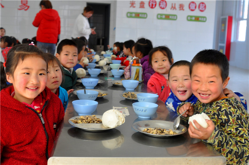璞邱小学是一所距离镇驻地30多里的山区小学,学生来自周边5个自然村,车场村的小学生的家离学校10多里。小学生在学校能吃上热乎乎的午餐,是老师、家长和学生们的共同心愿。在当地政府和学校的共同努力下,如今这一愿望得以实现了。午饭时间,小学生坐在食堂里,吃着热乎乎的午餐,高兴极了。(陈作进 )