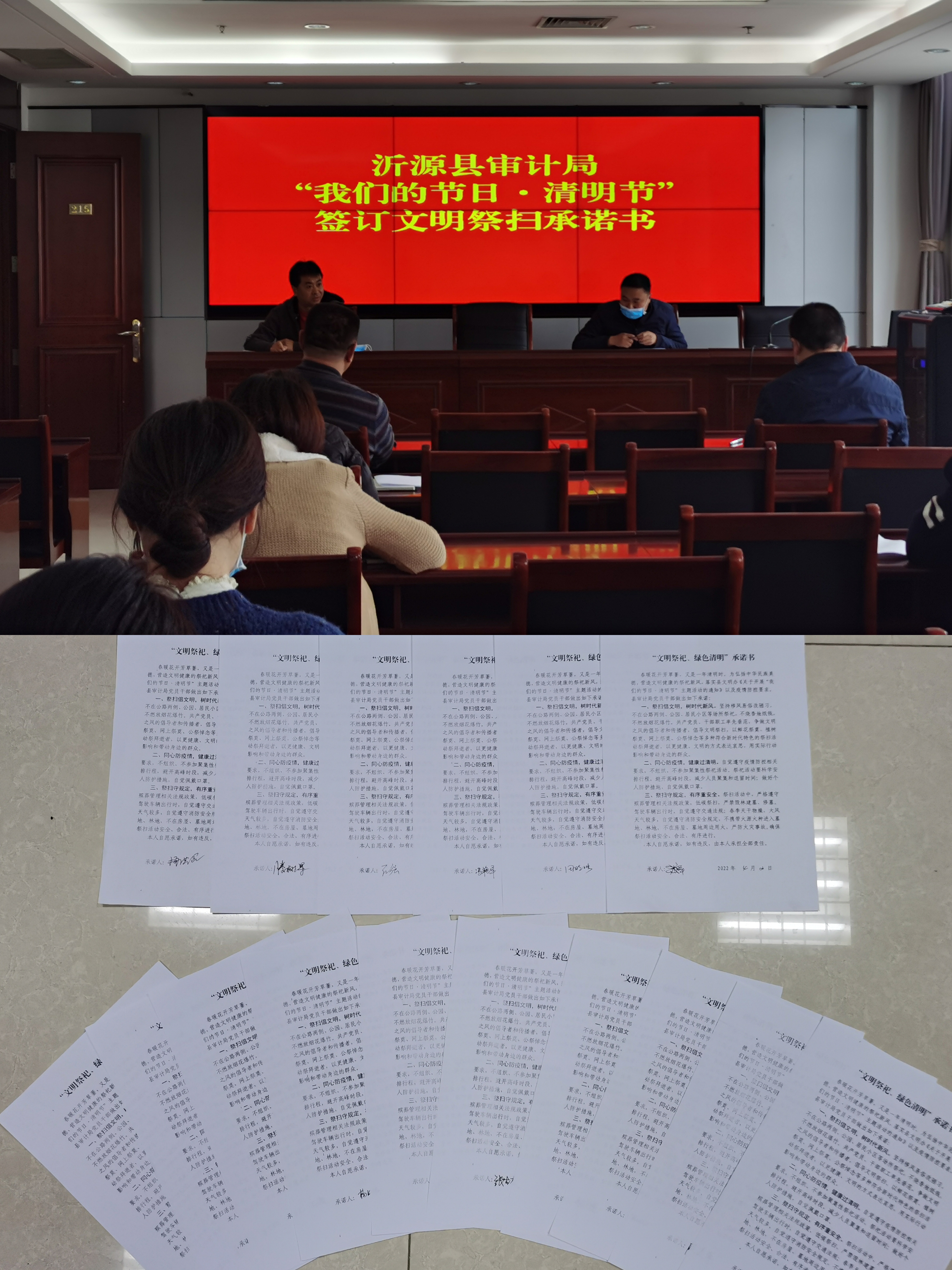 为弘扬中华优秀传统文化,培育和践行社会主义核心价值观,引导干部职工增强爱国之情,树立报国之志,增进干部职工爱党、爱国、爱社会主义情感,县审计局开展了“我们的节日·清明节”系列主题活动。 签订诺书。组织全体党员干部签订“文明祭扫 绿色清明”承诺书,鼓励党员干部带头开展网上文明祭祀,自觉践行清明节文明清明、平安清明的时代新风。 清明节追思礼。组织干部职工登陆中华英烈网、淄博文明网互动平台,进行网上祭奠,发表缅怀文章,撰写心得体会,缅怀革命先烈,传承红色基因。 线上诵读。以“我们的节日·清明节”为主题,采取个人朗读、集体诵读等形式将中华经典诗文进行动态演绎,通过开展经典诵读活动祭先祖、悼先烈,培育爱国主义精神、传承中华传统美德。 通过系列活动,号召大家以先烈为榜样,继承革命烈士的光辉遗志,脚踏实地,勤奋工作,进位攀高,突破提升,认真履行审计监督职责,为县域经济发展保驾护航。 | |||