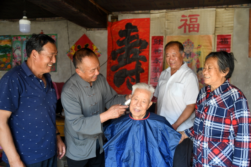 5月31日,南鲁山学区退休教师第二党支部成员组成志愿服务队,冒着酷暑,来到大山深处的文泉村、三岔店村、流水村等村,走访看望退休的老教师。 在流水村,志愿者向78岁的魏春兰老教师发放了“银龄互助联系卡”,嘱咐魏老师“有事找我们”,并精心为魏老师理发。 在文泉村77岁的老教师郑书宝家,志愿者嘱咐郑教师防范诈骗一定要注意,学会加强预防养老防骗,坚守好自己的“钱袋子”。