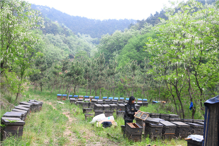 青山如黛,蓝天白云。 初夏时节,沂蒙大地群峰苍翠,风景如画。笔者走进沂蒙山深处的沂源县南鲁山镇文泉村的大山里,这里绿树成荫,山花绽放。 在山下的花海边,几百个蜂箱,摆开“回”字阵,甚是壮观!一群群忙碌的蜜蜂,振动着小小的双翅,穿梭在其间嘤嘤飞舞。 养蜂人李学武夫妇像蜜蜂一样忙碌着,正在这里“与蜂共舞”酿造着“甜蜜生活”。 夫唱妇随 靠父辈的十个蜂群起家 被问及缘何养蜂,李学武回忆起与蜜蜂初识的日子:“小时候,父亲在家里就养蜂,小小的蜜蜂能酿出甜蜜滋味,很吸引我,从小就喜欢蜜蜂。” 儿时的记忆让李学武对蜜蜂一直有着特殊的喜爱。 1992年,23岁的李学武结婚了,爱人是同村的郭太玲。两小无猜的妻子很理解丈夫的心事,支持他养蜂,并将结婚时娘家陪嫁的3000元拿出来,用于购置木料,制作蜂箱。在上世纪九十年代,3000元这可不是个小数目。 “前10箱蜜蜂是父亲分给我的。有蜜蜂在院子里飞来飞去显得很热闹,父辈们的勤劳也激励着自己勤劳苦干。”回忆起养蜂的经历,李学武显得颇为兴奋。 在李学武的记忆里,每天早上,太阳一出来,蜜蜂就开始忙碌,“蜜蜂喜欢暖和的地方”。小时候,家里就一直没断过养蜜蜂,在长期的耳闻目染中,让他积累了丰富的养蜂经验,与小小的蜜蜂也建立起深厚的感情。 1994年李学武的儿子出生,蜜蜂也发展到30箱。 这年,李学武把养蜂从副业变成了主业。年轻的夫妻俩也向往大山外的世界。1995年,小两口带着刚满周岁的儿子和20箱蜜蜂,开始了走南闯北的养蜂生涯。 在养蜂业内流传着这样一句话:“养蜂苦,养蜂累,养蜂辛苦活受罪。”养蜂的人总是跟着花儿跑,哪儿有花就去哪儿。一年到头追逐花期,看上去游山玩水很风光,其实风餐露宿、转场放蜂有诸多不易。 “养蜂不但是个技术活,还是个力气活。为了追逐花期走南闯北,不时地转地,生活很艰苦。还要照看还小的孩子。孩子4岁那年,我们将儿子留在老家,有爷爷奶奶照看着。”说起养蜂生活,妻子郭太玲感慨颇深。 “转地养蜂,就是根据气候和蜜源将蜂群转移到有花开的地方放蜂采蜜、繁殖生产。每年3月,南方的油菜花开始开放,我们按时长途转蜂,从湖北、江西开始放蜂采蜜,再辗转到江苏、安徽等地,追逐花期由南往北推进。到了五一前后,回到山东当地采槐花蜜。5月15日前后再转往东北。”郭太玲回往着过往。 “独在异乡为异客,每逢佳节倍思亲。”在外漂泊,对老人和孩子的思念,对家乡的牵挂,时时刻刻涌向心头。 走过千山万水,还是家乡最美。在外奔波了6年的夫妻与外对比意识到:家乡文泉环境好,山上山下花期长,山花也多,蜜源绝对好,是养蜂的好地方! 2000年,他们带着对家乡的思念和100箱蜜蜂回家了。从此,告别了在外的长期漂泊,在大山里安营扎寨静心养蜂到如今。 身居大山 用心酿造甜蜜事业 文泉村确实是个好地方,山林郁郁葱葱,各种花开遍山间。初夏,有大片的槐花盛开;夏秋之际,有漫山遍野的荆条花、丹参花、枣花等,这可忙坏了李学武和他的蜜蜂们。 “我们俩一心扑在这小小的蜜蜂上,生活很充实。每天,李学武早早起床,查看蜂箱中的蜂盖情况。”郭太玲告诉笔者。 郭太玲做完早饭后也帮着忙碌起来,几十年的陪伴,她也成了养蜂好手。 当天,在采访时,还遇见了悦庄镇崔家庄的陈善新,也在蜂场附近追花逐蜜,今天专程来取经。 为了方便照顾这些蜜蜂,李学武还在蜂场附近搭了一个简易的凉棚。坐在凉棚里,只见养蜂场里的蜂箱“回”字排开,听见一片“嗡嗡”声,很有一种千军万马的感觉。 由于文泉村环境好、空气好,高山蜂蜜受宠,李学武的蜂蜜声名逐渐远扬,甚至有企业直接到他家里订购。 问及蜂蜜的销路,李学武说到:“干酿蜜的,是个良心活。咱的蜂蜜纯,又坚持诚信经营,价好也不愁销路,几家大的蜂蜜产品企业是我的老订户。企业为了让顾客放心,每年都拿我的蜂蜜到有关部门检测,将鉴定报告拿给顾客看。” 爱人郭太玲接过话:“咱的蜂蜜不掺任何杂质,蜂蜜该是什么样就是什么样。无论什么类别的花蜜,做到一个花期取蜜,属于完全封盖成熟的蜜。” 郭太玲一边忙碌一边说:“现在,蜂巢蜜是这里的特色。蜂巢蜜是经蜜蜂酿制成熟并封上蜡盖的蜜脾,由蜂巢和蜂蜜两部分组成的一种成熟蜜。蜂巢蜜未经人为加工,不易掺杂使假和污染,同时集蜂胶、花粉、蜂蜜、幼蜂为一体,它的营养成份比普通蜂蜜要高得多,为蜜中之极品。” 作为朴实的山里人,李学武夫妻并不会说太多的华丽词汇,只是反复强调,家乡这片地方环境好,所以蜂蜜的品质也好。 除了诚信外,让李学武的蜂蜜品质得到保障的是这里大自然的味道,农药污染少,植被好,蜜源丰富,是产出纯天然味道蜜的关键。 每当采蜜,是夫妻二人最忙碌的时候,也是最高兴的时候。抖蜂、摇蜜、取蜜,虽然累,但心里特别甜。在养殖蜜蜂中,不仅仅收获了蜂蜜,也收获着幸福和快乐。 在采访中,不时有蜜蜂来骚扰。郭太玲却很淡定,她笑着说:“都习惯了,被蜇一下也不要紧,跟被蚊子叮一下差不多。”30年下来,他们早已习惯,收割蜂蜜时,甜蜜总能覆盖过痛楚。 随着市场对蜂蜜认识的不断提高,其美容、养颜、保健的特性越来越受到消费者欢迎,蜂蜜的销售额也不断扩大。 如今,李学武的蜜蜂从开始的10箱发展到现在的400箱,成为当地有名的养蜂能手。 冬季,是养蜂人的冬闲时节