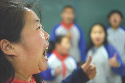 来源:大众日报 作者:赵东山 谢小华在语言训练课上教学生们怎样发音。