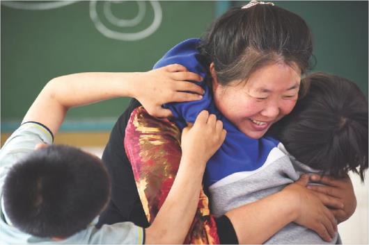 5月8日,下课铃响了,谢小华并没有直接回办公室,她放下手里的教具,径直来到患有脑瘫的学生小珊(本文中特需孩子均使用化名)的座位前,弯下腰,把小珊的手臂从头顶拉过搭在自己的肩上,挺腰起身,将小珊背在背上,一边和她说着话,一边上楼,走进卫生间。等小珊上完厕所,谢小华再把她背回了教室。这样上下楼陪小珊上厕所,谢小华每天都要重复好几次。 今年48岁的谢小华是淄博市沂源县特殊教育学校的一名教师,从事特教工作已经26年。面对一个个需要特殊照顾和关爱的残障学生,她像妈妈一样悉心呵护孩子们,特教学校里的师生亲切地称她“小华妈妈”。 1995年,谢小华从特殊教育师范学校毕业,她深知每一个特教学校学生在学习和生活上面临的种种困境,更理解每一个孩子身后的亲人、家庭对孩子的疼爱与希望。 小雨是一名孤儿,患有智力障碍,入学后经常蓬头垢面、披头散发地来上学。因为长时间不洗头、不换衣服,她身上的气味让很多人不愿靠近,小雨自己也排斥周围的人。谢小华注意到这个脾气有点倔的女孩后,就主动和她接近,像疼爱自己的孩子一样,帮她洗脸、洗头、扎辫子,逐步教她生活自理技能。渐渐地,小雨把谢小华当成了自己的亲人,见到谢小华就喊“妈妈”。 2013年,学校康复中心成立,谢小华开始专门从事康复训练工作。0-6岁是特需孩子的最佳发展和训练期,为让孩子们得到科学、精准的训练,谢小华为每一个孩子都制订了详实可行的康复方案,从语言、认知、感知觉到运动、生活自理、社会适应,每一种训练都细致入微。孩子们的动手能力差,她就手把手地训练孩子伸、握、拉、推、拿等一系列精细动作,一组完整的训练动辄需要一上午的时间,谢小华经常累得头昏眼花、腰酸腿疼。 有一天,学生小月的妈妈突然跑进康复室,她拉着谢小华的手激动地说:“老师,孩子能和我说话了!”谢小华和孩子妈妈高兴得又哭又笑地抱在了一起。3年前,小月还是一个性格孤僻、无语言交流的孩子。谢小华为小月量身定制了康复个训方案,天天陪孩子进行语言训练,从气息掌握、口型矫正到发音说话,每天累得口干舌燥、咽喉肿胀,但她从未放弃,直至孩子张口说了话。 26年来,谢小华先后帮助过120多名特需孩子,让这些孩子重新燃起生命之光。