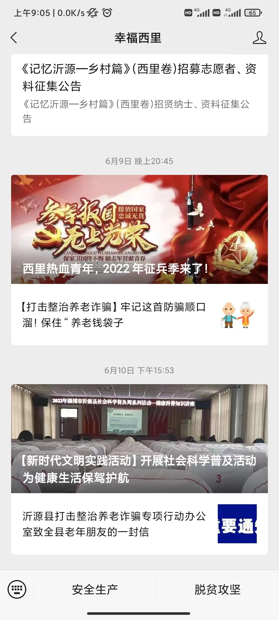 政务新媒体是解决政务公开、应对政务舆情、提高群众满意度和提升国家治理能力的一把金钥匙,依托互联网时代,政务新媒体更是反映民意的一个窗口。西里镇坚持做好政务公开工作,使用了多种方式进行政务公开宣传。得益于移动互联网的发展,越来越多的村民群众使用手机公众号获取相关资讯,西里镇也通过“幸福西里”公众号,持续宣传政务信息,开设了“安全生产”和“脱贫攻坚”两个栏目,将人民群众最需要最关心的内容及时推送出来。 近期,“幸福西里”公众号推送了乡村公益岗聘用人员公示、《记忆沂源——乡村篇》(西里卷)志愿者招募等人员召集信息;打击整治养老诈骗系列宣传;征兵宣传以为其他政策、法规宣传。通过新媒体方式,拓宽政务公开传播途径,不断做好政务公开工作,是为人民群众做好服务的重要举措之一。 西里镇将继续管好、用好政务新媒体,坚决杜绝久不更新、“僵尸化”等“病症”,让新媒体成为与人民群众互动连心的平台,成为助推服务型政府建设的利器。 | |||