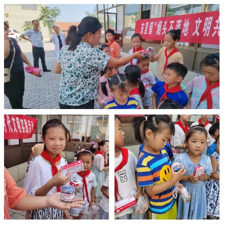 小烟头,大文明为培养群众的文明行为习惯,养成健康的生活方式,树立绿色环保观念。 近日东里镇第一期“烟头不落地 文明共传递”文明实践活动在沂河南村开启。东里镇积极响应文明城市常态化创建,通过“孩子小手拉大手”,开展“捡拾小烟头,传播大文明”活动,引导孩子、家长共同成为文明的实践者,传播者和捍卫者。 为推动捡烟头活动积极开展,鼓励孩子们的参与热情,志愿者引导孩子们进行统一兑换,按照规定数量的烟头兑换订书机、彩色小夹子等学习用品,现场异常火爆,孩子们表示出极大的热情。 “这项活动有新意,更有意义!”说起捡烟头兑换小礼品的活动,家长们连连称赞,兑奖其实不重要,能为村里环境美化出一分力更让人高兴。 “烟头不落地 文明共传递”文明实践活动促使广大群众树立居住环境整治共整共治共享理念,形成全社会互相监督管理环境卫生的良好局面,让烟头和垃圾不落地成为常态,让东里镇变得更美丽更文明。
