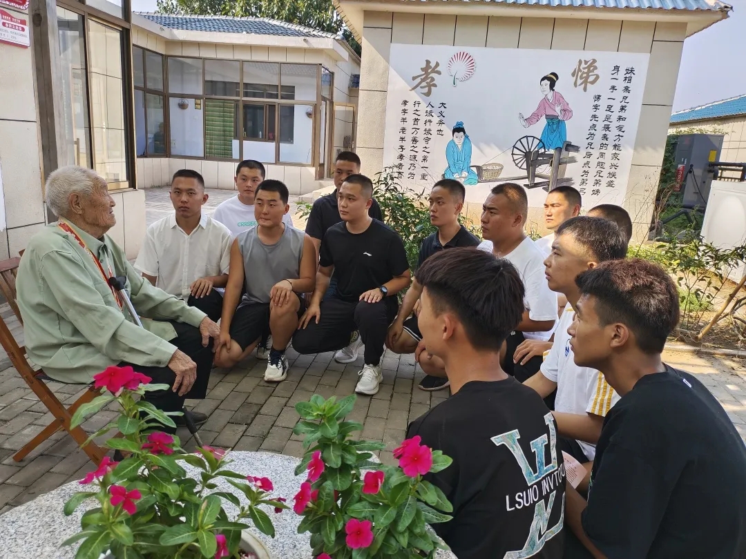 9月10日,沂源县东里镇12名预征新兵来到东里镇沂河南村新时代文明实践站,聆听建国前老党员张立英讲述过去的“红色故事”。