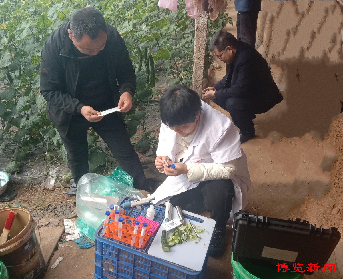 为保障群众舌尖上的安全,自3月1日起,沂源县农业农村局联合镇级农产品质量安全监管站,重点针对大棚蔬菜开展农产品质量安全专项检查行动。  在检查中,工作人员重点对生产基地生产记录、农业投入品使用、合格证使用等情况进行了全面检查,随机抽取番茄、黄瓜等蔬菜12批次,现场开展智能农残速测。经检测,12批蔬菜均没有农药残留超标现象发生,全部合格。同时,工作人员现场发放《农产品质量安全法》《农药包装废弃物回收处理——致全县广大农民朋友和农药经营者的一封信》等宣传材料,督促生产主体严格执行质量控制要求,确保农产品质量安全有保证。