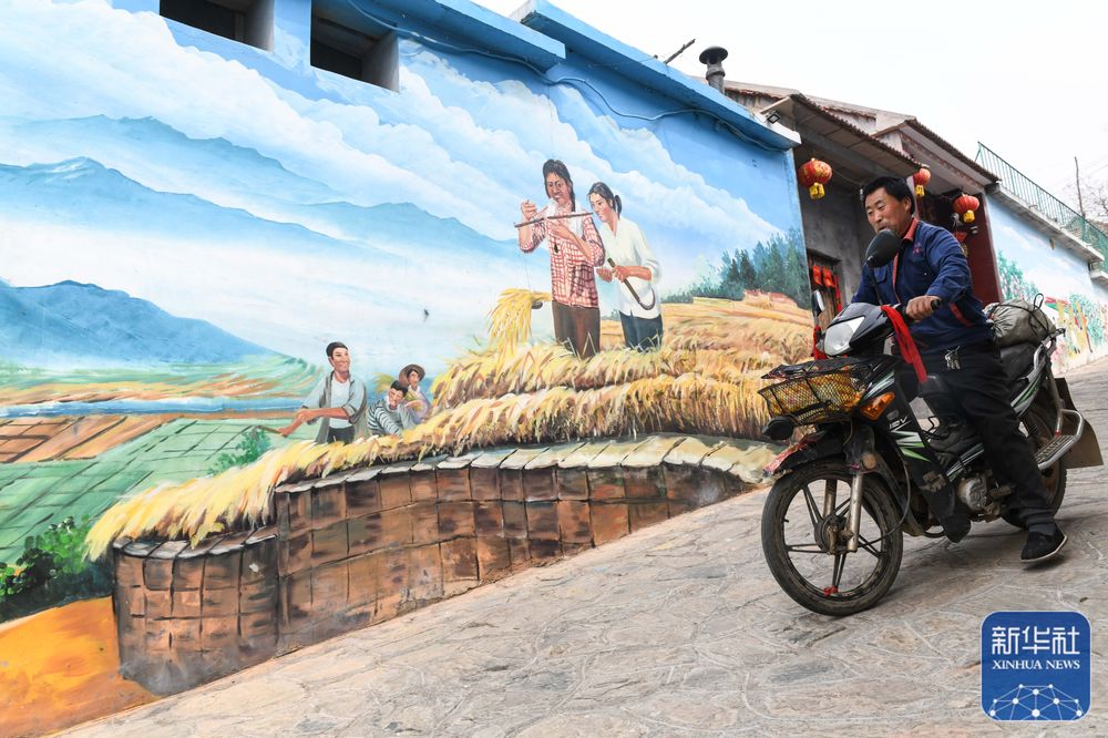 ↑3月22日,计宝峪村居民经过墙绘街巷。