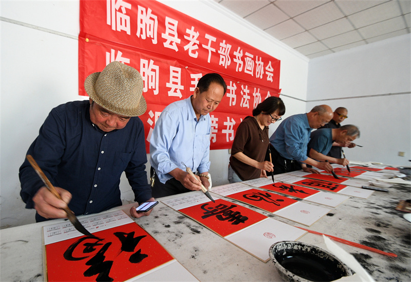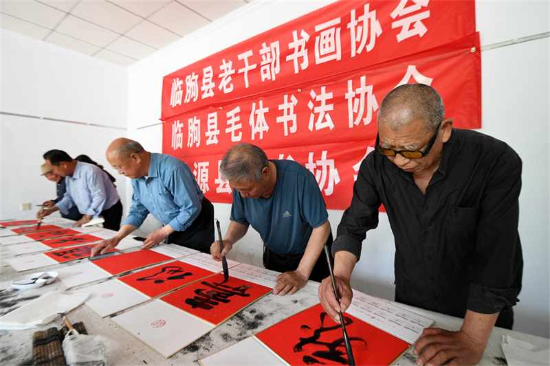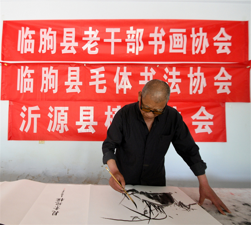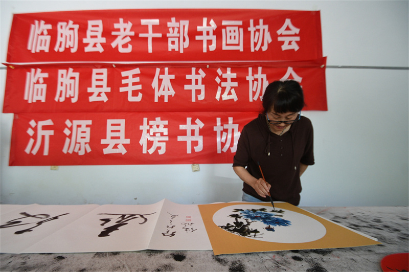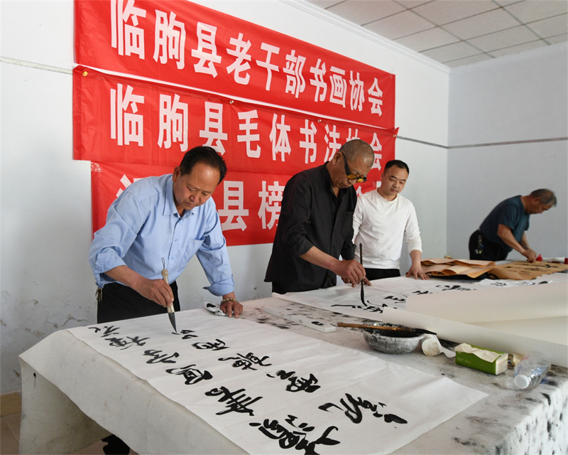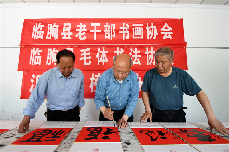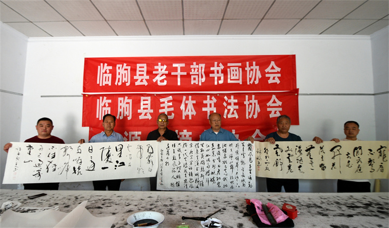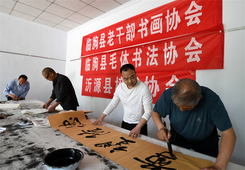 5月15日,临朐县老干部书画协会、临朐县毛体书法协会、沂源县榜书协会的书画爱好者相聚沂源县城开展夏季书画笔会交流活动。