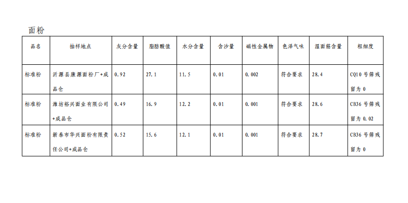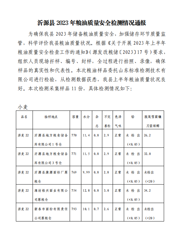 沂源县2023年粮油质量安全检测情况通报