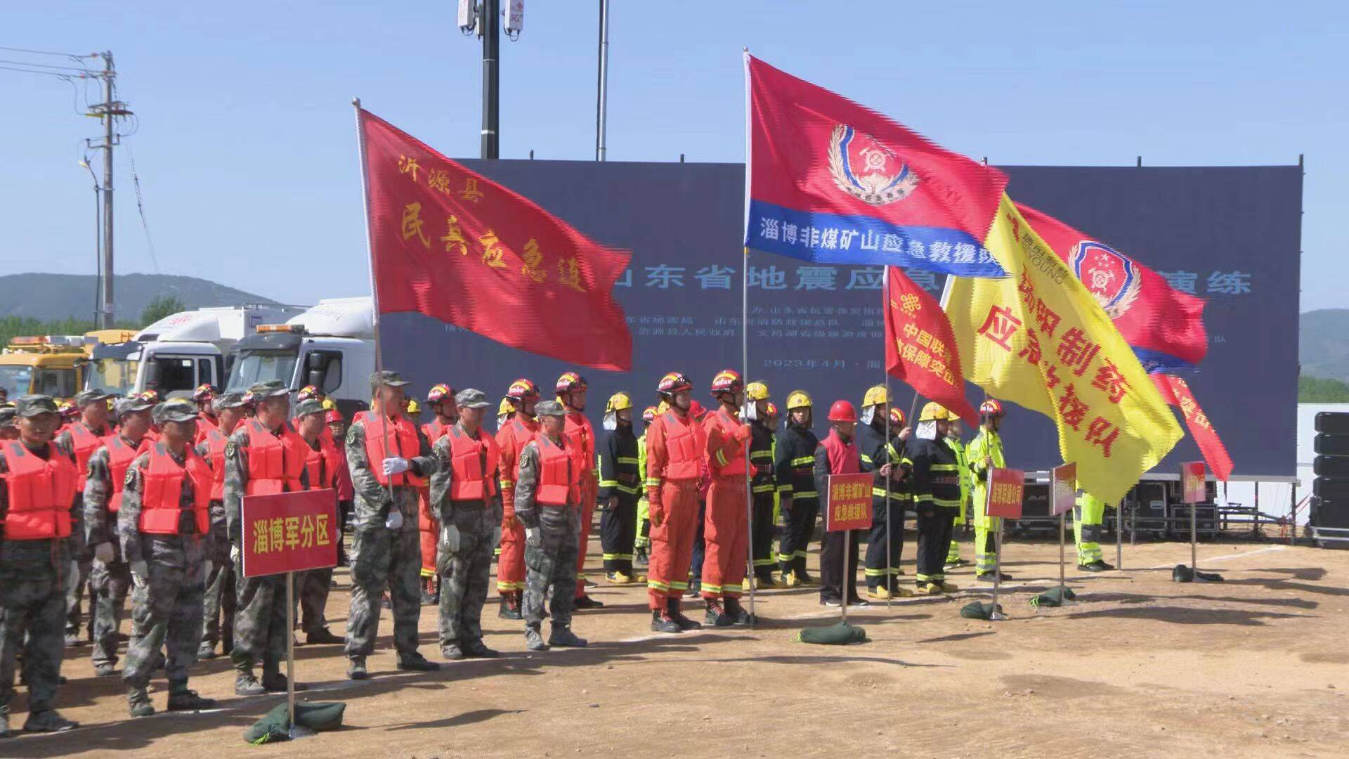 4月26日上午,2023年山东省地震应急救援综合演练在我县举行,省应急厅党委委员、副厅长邵光东,副市长赵剑,县委书记边江风,县委副书记、县长张涛等领导出席活动。 地震应急救援综合演练坚持以练为主、贴近实战原则,结合沂源县情,模拟地震来袭,共设置了人员疏散、通信设施保障与指挥部搭建、应急队伍集结与物资装备调运、废墟搜救、山岳救援、水域灾害抢险与人员搜救、城市基础设施抢修、断路交通抢修、危化品泄漏火灾处置等9个演练科目。全省30余支队伍、800余人、2架次直升机、200余台车、2000余件(套)装备参加演练。通过地震应急救援综合演练,进一步检验了地震应急预案的实用性、可操作性,锻炼了应急救援队伍快速反应、协同作战能力,提升了应急救援组织指挥、应急处置水平,为加强地震灾害事故应急救援能力建设打下良好基础。