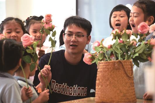今年25岁的曹光洋是沂源县第四实验幼儿园的一名幼教老师,已从事幼教工作两年,这位常人眼里阳光、帅气的大男孩被幼儿园孩子们亲切地称为“功夫熊猫”“男阿姨”。 2021年一次偶然的机会,师范大学毕业的曹光洋读到了一篇关于中国幼教事业的文章,他意识到幼教男教师的缺乏和男性在幼教事业中不可替代的重要性。想到喜欢和孩子打交道,他选择了报考幼儿教师岗位并如愿以偿。 “看孩子不是女人干的活吗?”“男老师能行吗?”就这样,他带着家人的不理解和部分幼儿家长的不信任开始了他的幼教生涯。为了打消大家的疑虑,他从小事做起:教孩子洗手、吃饭、穿衣服,提高孩子的生活自理能力,获取孩子们的信任。“工作虽然辛苦,但是每当听到孩子们呼唤,看到他们的笑容,我就会感到精神百倍。”曹光洋说。每当午休起床看到一些女孩的头发和小辫出现蓬松凌乱时,曹光洋都会学着身边老师梳头发的动作,用手心攥紧一缕头发,小心翼翼地从上梳到下面,耐心地帮她们一一梳理好。 “功夫熊猫哥哥,咱们什么时候再去练武术?”“咱们再去踢足球吧!”一次在幼儿园操场录制武术操视频的经历,让全幼儿园的小朋友都见识到了曹光洋帅气威武的“功夫”,从此他便成了孩子们眼中武艺高强的“功夫熊猫”。在幼儿园里,不论是不是自己班的孩子,只要一碰到曹光洋,他们都会开心地喊出一声“功夫熊猫”。对于孩子们送的这个外号,曹光洋说他很受用。一次曹光洋有事请假,午睡起来的女孩子都嚷嚷着要“功夫熊猫”回来为她们扎小辫。 “跌倒了不要怕,爬起来继续前进!”在户外游戏中,每当有孩子摔倒或者畏惧退缩时,曹光洋会大声鼓励孩子勇敢。对于跌倒的孩子,他用大手拉起小手,拍拍孩子身上的灰尘,用大拳碰一碰小拳,鼓舞孩子,稳定孩子的情绪。在敷药时,他小心翼翼地拿着棉签说道:“咬紧牙,瞪大眼,你很棒,最勇敢!” 阳光、积极、乐观又坚强的形象,让曹光洋成了孩子们心中的偶像。渐渐地,幼儿园的孩子和老师都喜欢上了这名“男阿姨”,孩子家长也都愿意让孩子入园到他的班。“做孩子的阳光使者,做孩子的坚强后盾。”曹光洋说每天和孩子们在一起是他感到特别幸福特别有价值的事。 | |||
