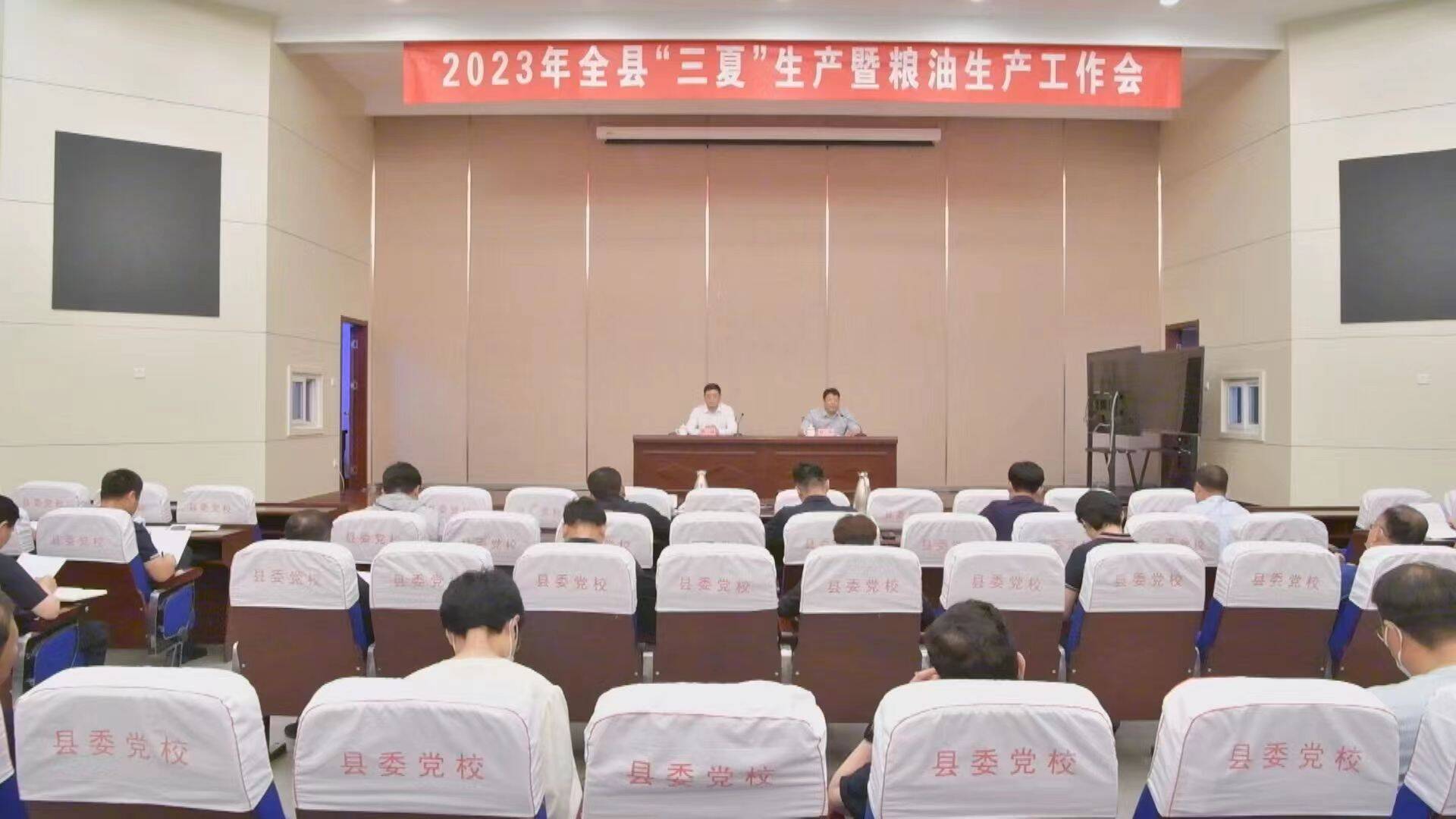 6月3日,我县组织收听收看省、市“三夏”生产视频会。视频会议结束后,接续召开2023年全县“三夏”生产暨粮油生产工作会。县委副书记、县长张涛主持会议并讲话,副县长赵强出席会议。