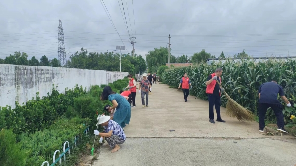 沂源县科学技术协会为“创卫”工作购置物资,由主要领导带队深入历山街道石臼新区党建共同体所属村主要干道,与