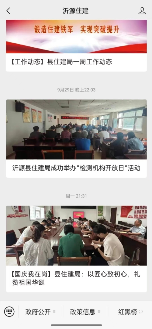 沂源县住建局常态化开展政务公开工作,定期发布信息,积极推进中心工作和重点领域信息公开,以便民利民原则,积极做好政府信息依申请公开工作,通过“暖心式”答复,让部门沟通交流的“多”,群众跑腿问询的“少”,发挥依申请公开“小窗口”的“大功用”。 一、压实责任,做好政务公开日常工作 将功夫花在日常,定期更新政府网站信息。根据机构职能变化以及领导职务调整,动态更新工作部门职能配置及内设机构栏目,提升信息发布时效性、准确性。及时发布执法检查信息、重要部署执行公开、优化营商环境、住房保障等信息,不断强化以公开促落实、优服务、强监督作用。 二、温情服务,健全政府信息依申请公开答复机制 不断健全政府信息公开登记、审核、办理、答复、归档工作机制,提升答复工作质量,根据申请人所需信息内容、获取形式,在法定期限内予以答复,对于内容较为模糊,主动沟通,明确其所需信息。同时提供现场查阅、复制、拷贝服务,注重温情与法理,全方位帮助申请人获取其所需信息。今年以来,共受理8件已申请公开件,均依法依规进行答复。 三、提质增效,不断拓展政务公开广度与深度 依托“沂源住建”公众号,持续更新一周工作动态,通过图文、视频形式,多维度、深层次、多形式宣传住建领域中心工作和重点工作进展成效。同时及时发布二孩三孩家庭购房、住房保障等相关政策,不断提升公众获取政府信息的服务体验。 | |||
