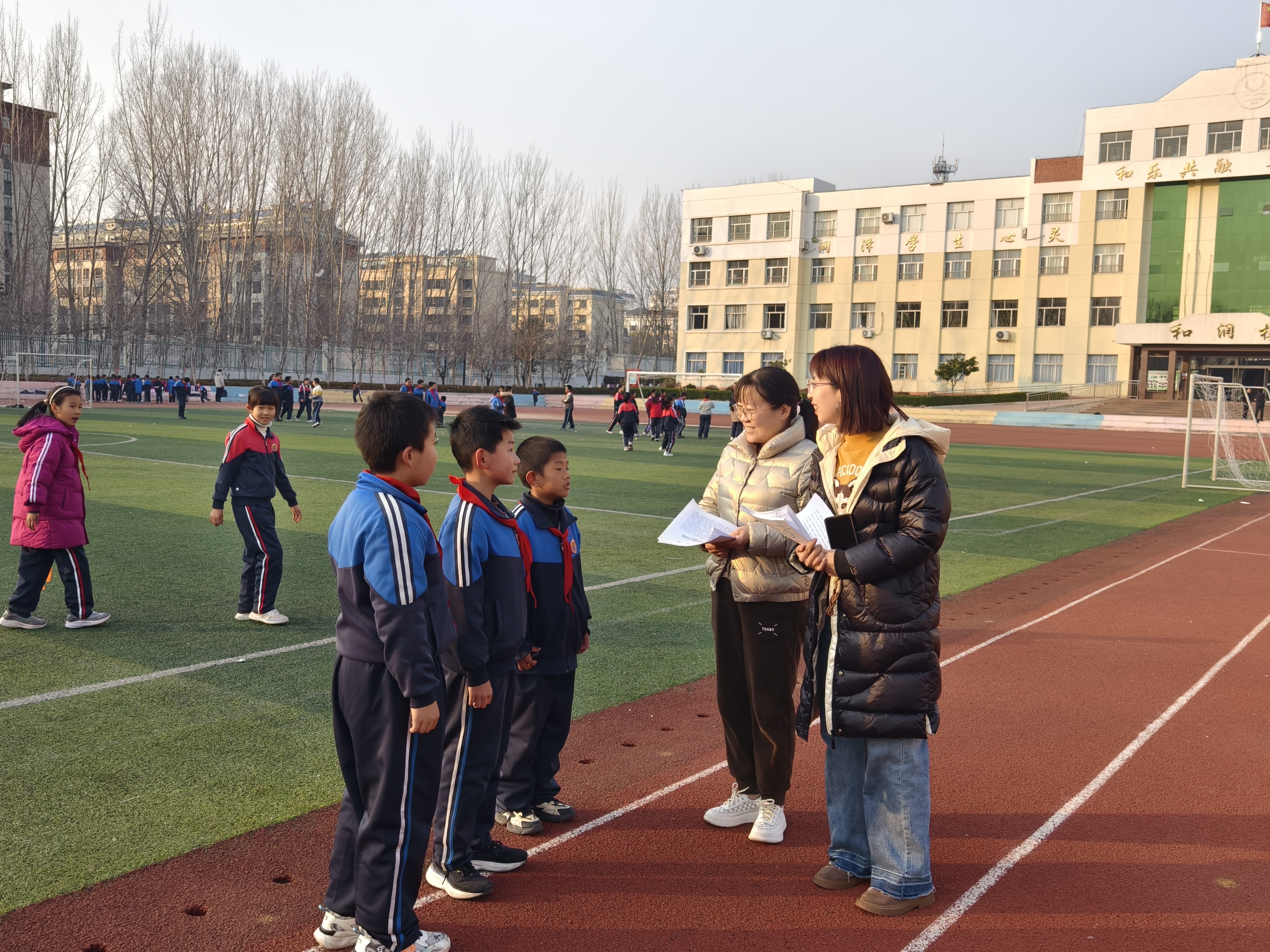 近日,沂源县审计局在第二实验小学校长经济责任审计中,重点关注学生每天体育运动情况,通过调查问卷、个别访谈、实地查验等方式,了解学生校内体育活动时间是否得到保障,是否掌握健康知识、基本运动技能、开展课余训练等情况,助力“双减”政策落到实处。图为审计人员在体育场与学生们了解体育社团活动和学校"双减”政策落实情况。