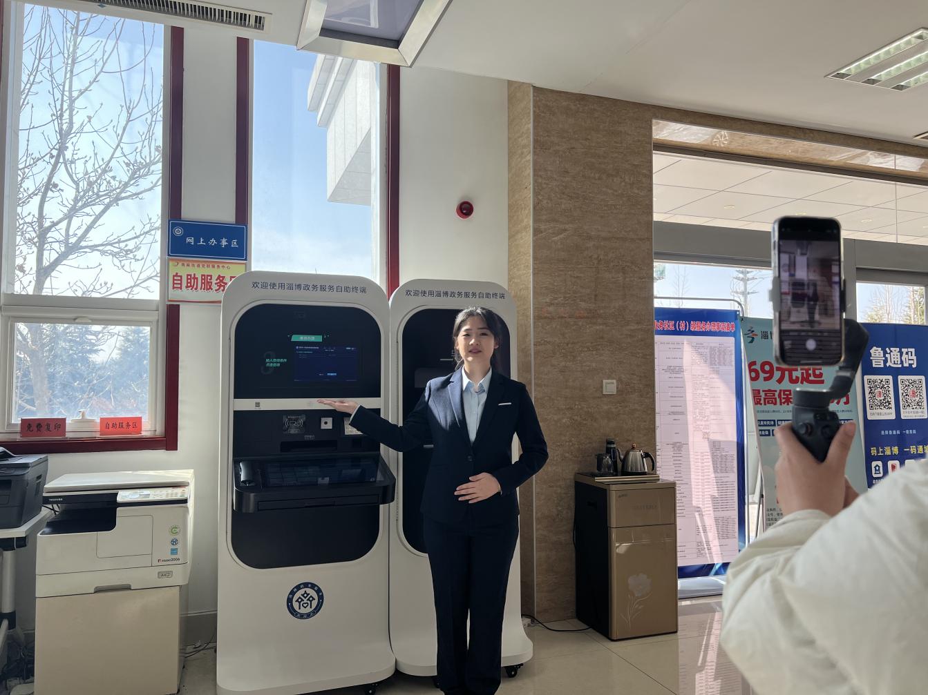 视频中,工作人员笑容亲切、语言清晰,“不仅街道便民服务中心可以使用‘淄博政务服务自助终端’,在沂河之畔党建共同体、南部新城党建共同体、红旗党建共同体便民服务站都可以使用哦。”三言两语就说明了以往办事群众不知晓、不了解、不清楚事项。“原来我每个月的养老金在家门口这个‘自助终端’上就能查询。”看了街道政务服务“小姐姐”们的“白话指南”视频后,家住南麻街道贾家庄村的齐阿姨拿着身份证在村里的便民服务站顺利查询到了自己的相关社保待遇信息。