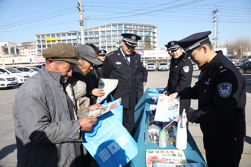为庆祝全国第四个中国人民警察节,充分展现沂源公安永做“人民的保护神”的使命担当。县局组织开展了以“砥砺奋进110,一心为民保安宁”为主题的政府开放日宣传活动。副县长、县局党委书记、局长张秀光,县局党委委员齐勇出席活动。 1月10日上午,指挥中心、刑侦、巡警、禁毒、户政、出入境、城区派出所在县城佳慧新天地购物广场集中开展110宣传活动。公安民警向群众展示了沂源公安在队伍管理、破案打击、安全防范等工作中取得的成绩,介绍110受理范围、正确拨打方式及非警务报警的处理方式。结合当前警情的特点,积极向广大群众宣传禁毒、反诈、反恐、禁放烟花爆竹等知识,引导群众加强安全防范意识,确保人身安全。 期间,张秀光同志与现场群众亲切交谈,征求对公安工作的意见建议,并为互动群众发放带有警察标志的纪念品。同时到警务工作站看望慰问执勤民警、辅警,并致以节日的问候。 | |||
